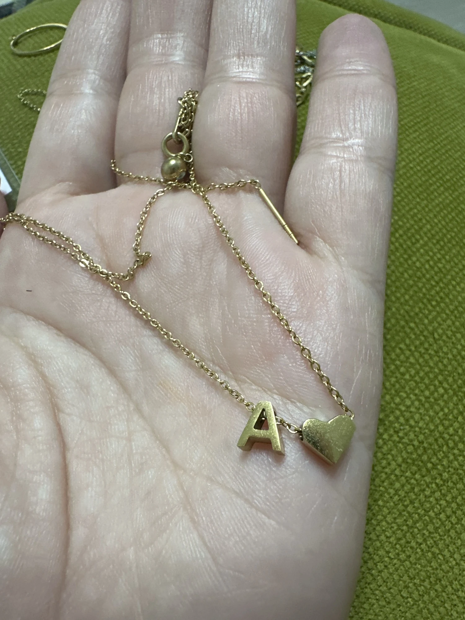 Choose from gold plating and silver tone finishes to match your style. With an adjustable chain and secure clasp, this necklace is perfect for everyday wear or as a heartfelt gift. Make your mark with our Dainty Initial Heart Necklace today.